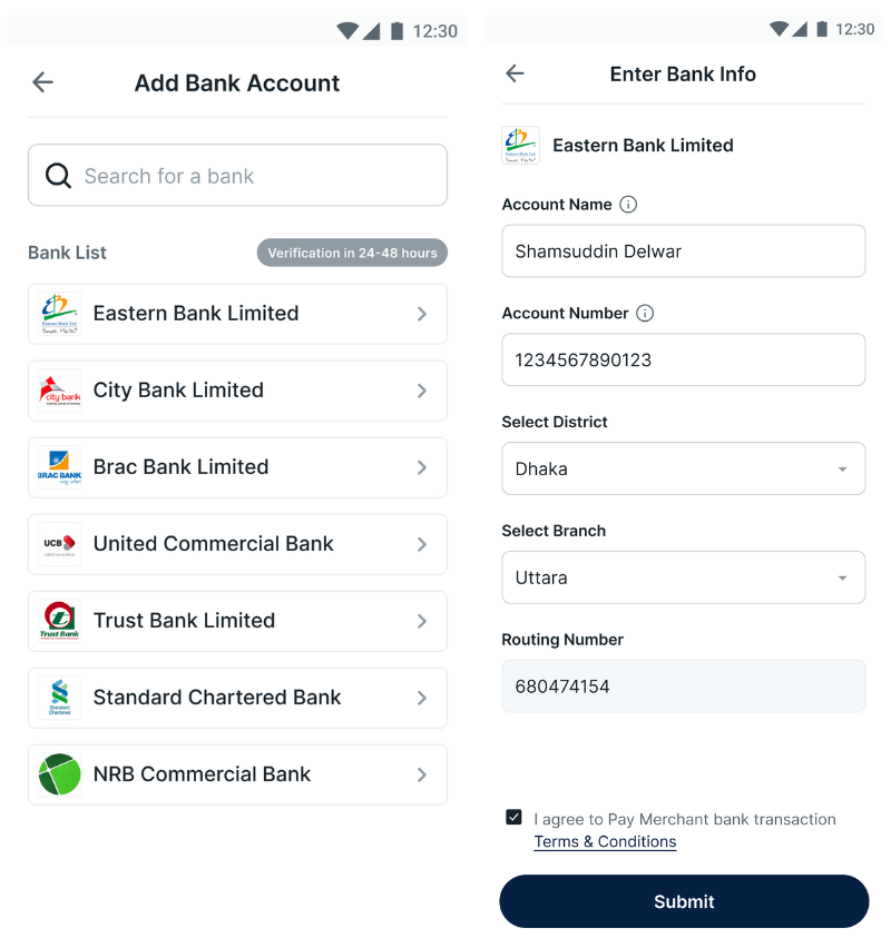 ৪। আপনার ব্যাংক অ্যাকাউন্ট অ্যাড করা না থাকলে প্রয়োজনীয় তথ্য দিয়ে ব্যাংক অ্যাকাউন্ট অ্যাড করুন। নতুন ব্যাংক অ্যাকাউন্ট ২৪ থেকে ৪৮ ঘন্টার মধ্যে ভেরিফাই করা হবে।